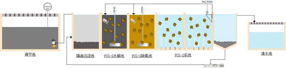 1,應(yīng)用PCG-S型載體強(qiáng)化特定污染物質(zhì)的生化反應(yīng)轉(zhuǎn)化及去除。